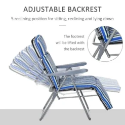 - Foldable padded garden lounger with 5 position reclining adjustment