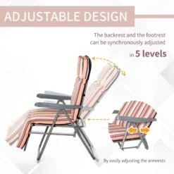 - Foldable padded garden lounger with 5 position reclining adjustment