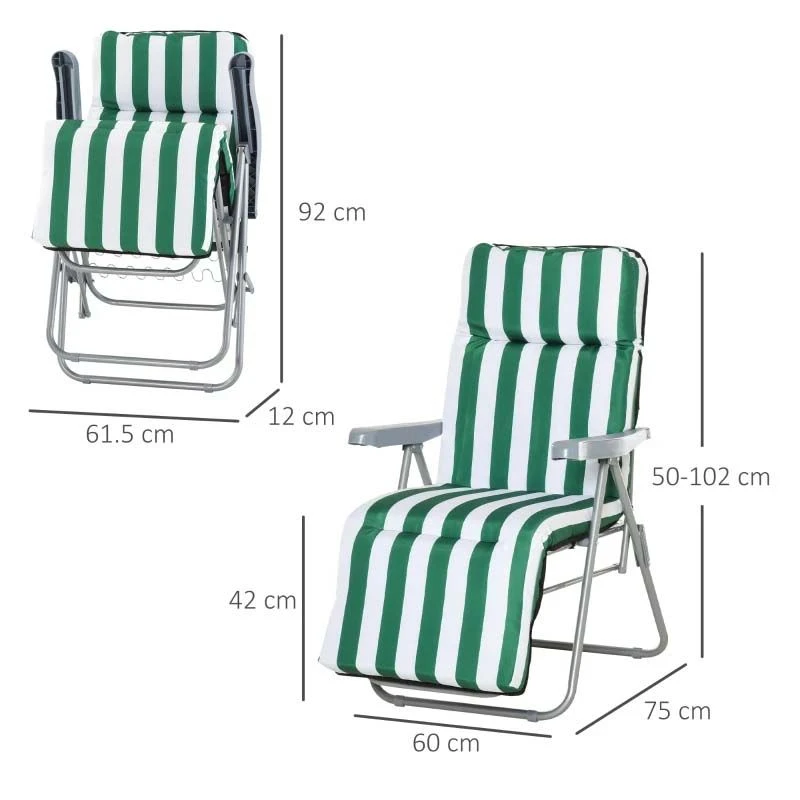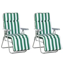 Outsunny 2-Piece Sun Lounger Set – With Cushions – Green/White – 01-0710