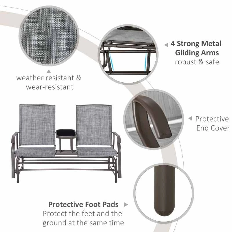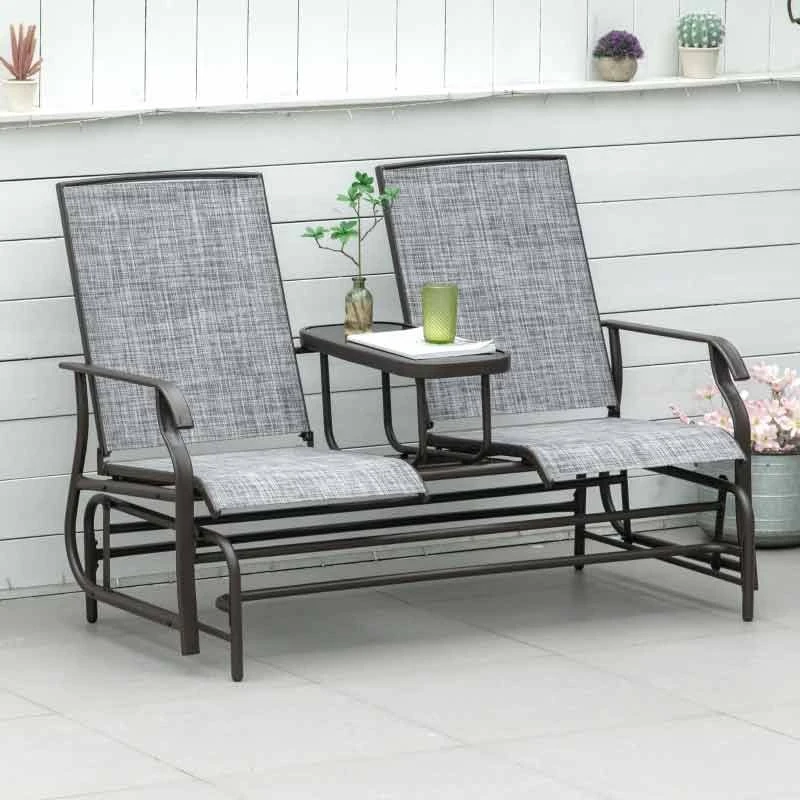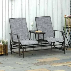 Outsunny 2-Seat Metal Texteline Garden Rocking Chair-Grey – 84A-011