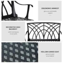 This beautifully designed Outsunny garden bench with an elegant antique feel will be the perfect addition to finish off your outdoor living space. Constructed from aluminium, this garden bench is durable and will last for years to come. The curved seat and arm rest will offer you and a friend support and comfort all day long. The cut out design is not only stunning, it also prevents water build up and circulates air to keep you cool on hot summer days.