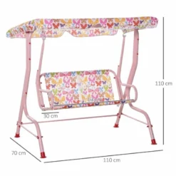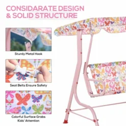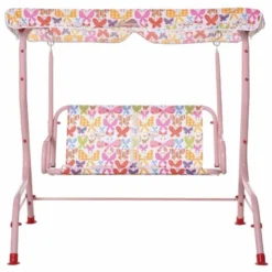 Outsunny 2-Seater Kids Canopy Garden Swing Chair – Pink – 312-026PK