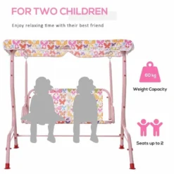 Outsunny 2-Seater Kids Canopy Garden Swing Chair – Pink – 312-026PK