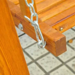 This two Seater Outsunny Larch Wood Swing Chair is the classic way to update your outdoor area. Made out of solid Larch wood ensure its durability and high stability. Polyester canopy with PA coating offer protection from UV rays and mild rain. Galvanized steel chain adds superior strength and corrosion resistance. With its elegant look, the swing chair is a beautiful addition to your garden, porch or poolside, etc.