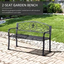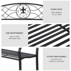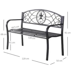 Outsunny 2 Seater Metal Frame Bench 1280x500x910mm – Black – 84B-284