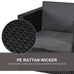 Outsunny 2-Seater Rattan Sofa Furniture Set With Cushions, Steel Frame – Grey – 860-073V01GY