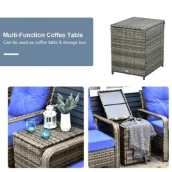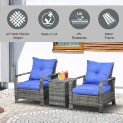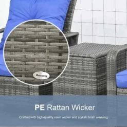 Outsunny 2-Seater PE Rattan Garden Seating Set with Padded Chair – Blue- 860-111V71BU