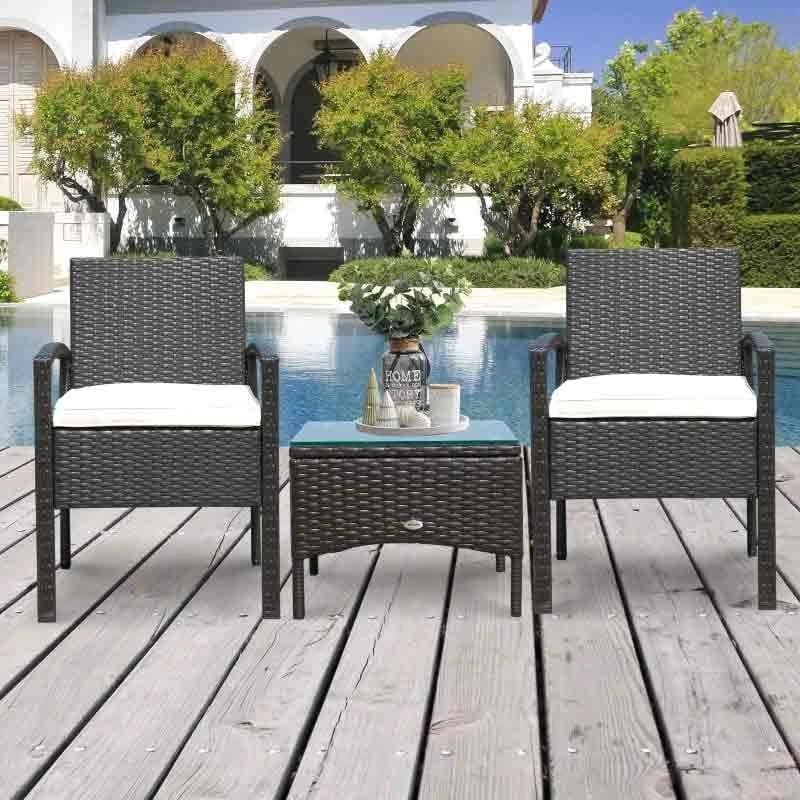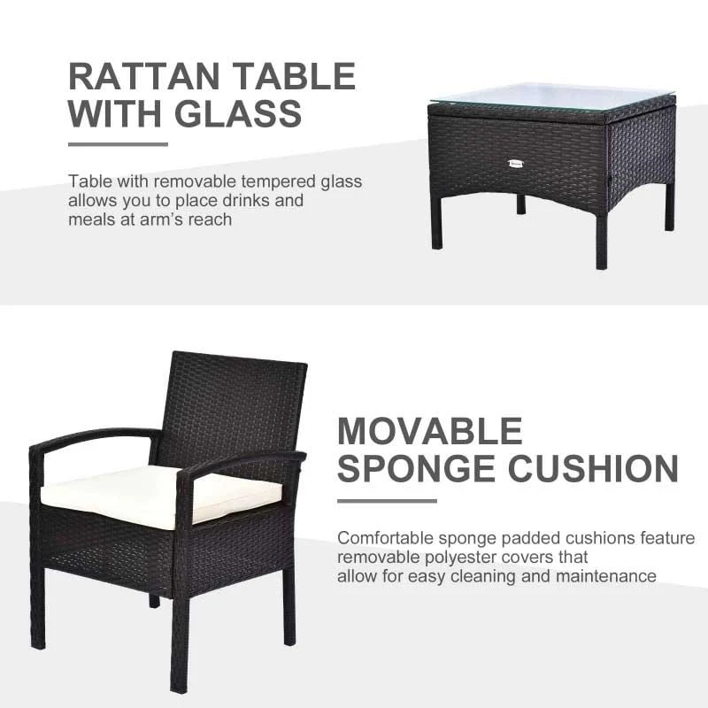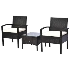 The modern Outsunny 3-piece outdoor patio furniture set provides you relaxing and beautiful outdoor lounging experience so you can enjoy your wonderful outdoor time. The ideal for poolside, deck, patio, and many other. This patio outdoor chair has a steel structure for long-lasting use and can withstand changes in temperature. The cushion cover can be removed and washed. Its lightweight and UV resistant.