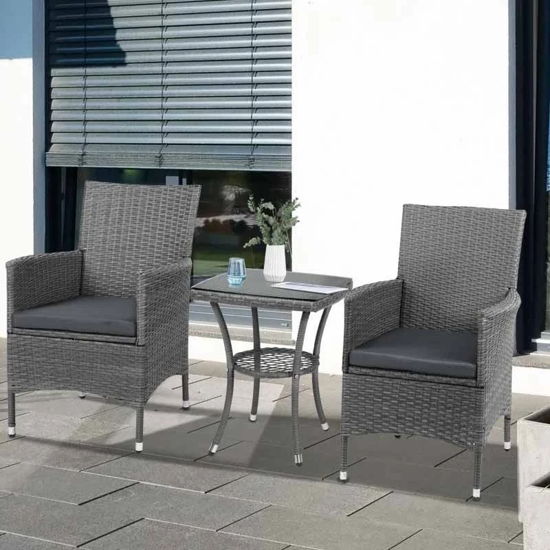 Outsunny 2 Seater Rattan Coffee Table Set – Grey – 863-033