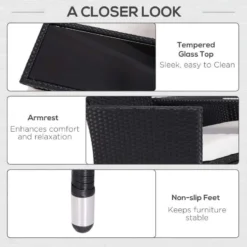 Outsunny 2-Seater Rattan Garden Chair Set W/Middle Table-Black – 841-149BK