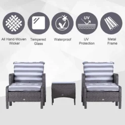 - Weight Capacity: 160kg (armchair), 70kg (ottoman), 30kg (table)