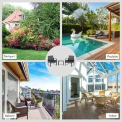 Outsunny’s three-piece outdoor dining set is the ideal fusion of fashion and utility. This chair and table set is extremely sturdy and made from top-notch, hand-woven PE wicker rattan that is supported by a solid metal frame. Each chair is incredibly comfy, offering hours of rest with its padded cushion, high-rise back, and armrests. The table has a thick glass top that is stain-resistant, easy to clean.