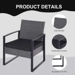Outsunny 2-Seater Rattan Patio Set with Cushions – Grey / Black – 863-013GY