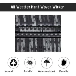- Metal frame for strength, with wicker rattan wrapped around to ensure durability and protection outdoors all-year round. Easy to clean with a damp cloth