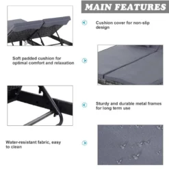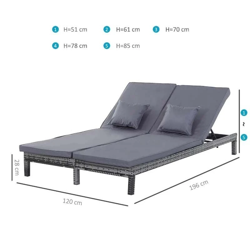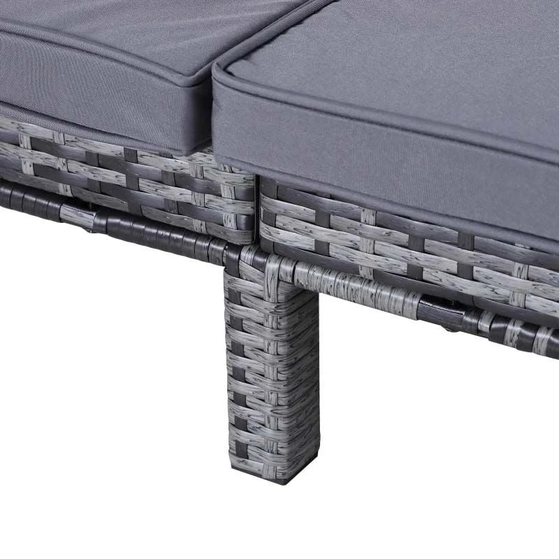 Outsunny 2 Seater Rattan Reclining Sun Lounger Set – Grey – 862-023V71GY