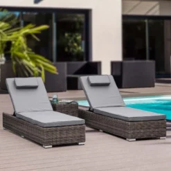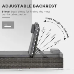 Outsunny 2 Seater Rattan Reclining Sun Lounger Set With Table – Grey – 862-045V70