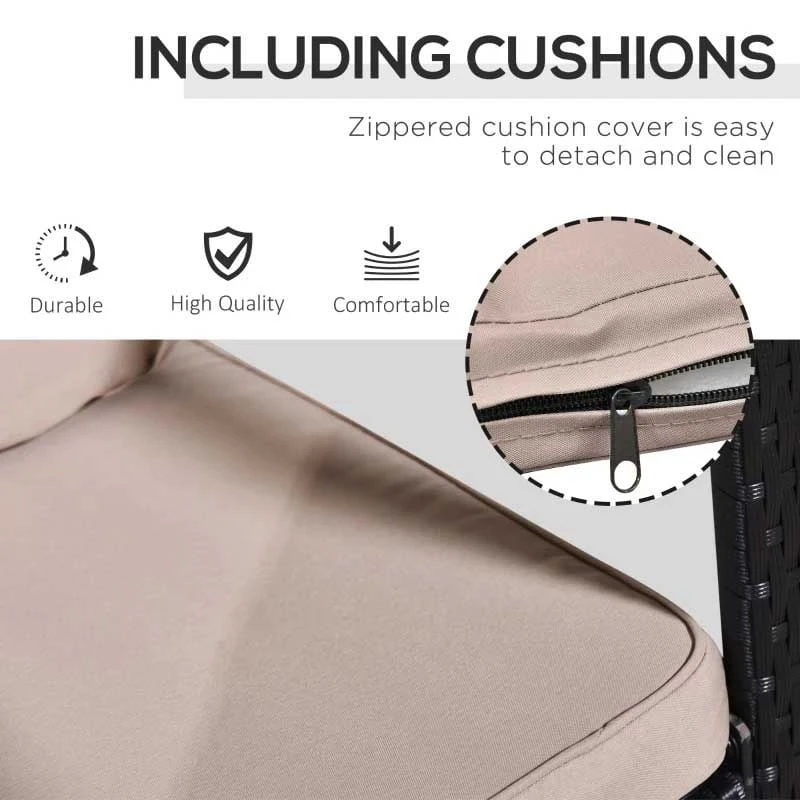 Outsunny 2 Seater Rattan Rocking Bistro Set with Cushion -Black / Beige – 867-036