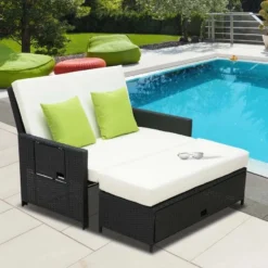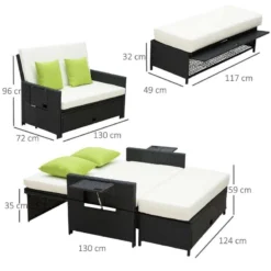 Check out this stunning Outsunny rattan reclining garden sun lounger set that we can be sure will compliment your outdoor living space perfectly. Constructed from a high-quality metal frame and wrapped in a rattan wicker, this sun lounger set is strong, durable, easy to clean and will last for years to come. You and a friend can sit back using the reclining back rest function for ultimate relaxation, the added cushions keep you both supported and comfortable for hours on end. The foot stool with under storage can be pushed against the 2-seater sofa to convert into a day bed or use as additional seating to entertain a few others. The handy lift up side trays are ideal for resting your phone, drinks and snack bowls. If you are looking for a beautifully designed rattan sun lounger set, complete with scatter cushions, this is the one for you.