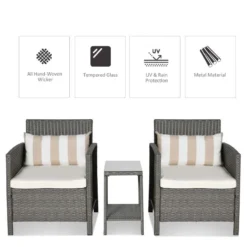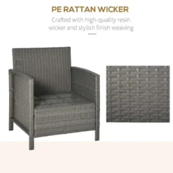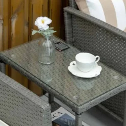 Outsunny 2-Seater Rattan Weave Conservatory Furniture Patio Bistro Set with Cushion Pillow – Grey, Cream White – 860-086