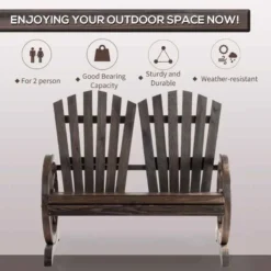 Constructed from natural fir logs and wagon wheel arm rests design, this Outsunny garden bench is a must have piece of furniture to compliment your outdoor living space. With high back, deep seats and curved arm rests this garden bench will keep you and a friend supported and comfortable for hours on end. The slatted back and seat design prevents water build up and circulates air keeping you cool on warm summer days. Constructed from solid fir wood logs, this garden bench is durable, weather resistant and will last for years to come in the elements. This garden bench is truly a magnificent piece of furniture and is a must have so you can enjoy your surroundings in peace and tranquillity.