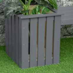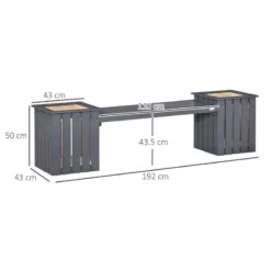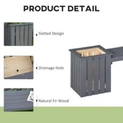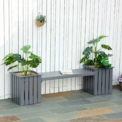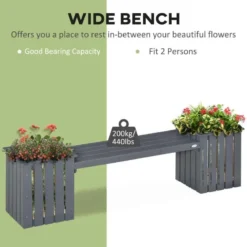 This wooden 2-seater Outsunny garden bench with planter pots will be the perfect addition to your outdoor living space. The decorative planter pots allow you to add flowers of your choice to brighten up a peaceful spot of your garden. Constructed from a solid fir wood this garden bench is durable and will last for years to come. The wide 2-seater is perfect for you and a friend to relax in the comfort of your own garden. The slatted seat design drains water and circulates air to keep you cool on warm summer days.