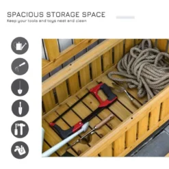 Storage made simple with this handy and beautiful wooden Outsunny garden bench with under seat storage. The storage box is ideal for keeping garden toys, tools and supplies together and protected. The wide 2-seater with high back and curved arm rests is perfect for you and friend to catch up in comfort. Constructed from a high quality fir wood and finished off with a protective top coat you can be sure this garden bench will withstand the elements for years to come.