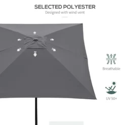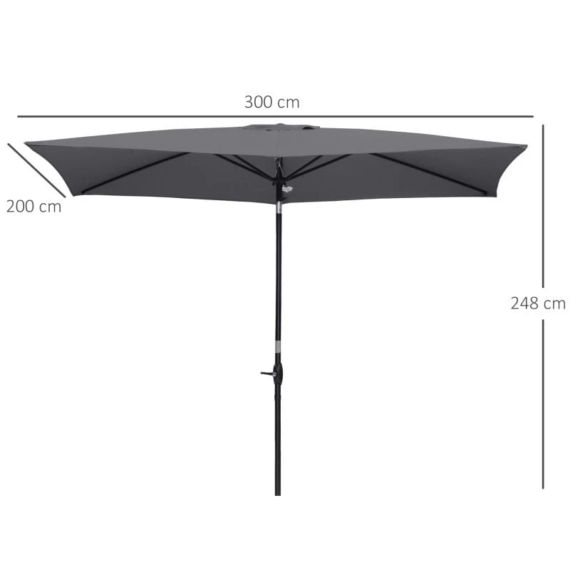 Outsunny 2 x 3m Rectangular Patio Parasol with Crank & Push Button Tilt – Dark Grey – 84D-158CG