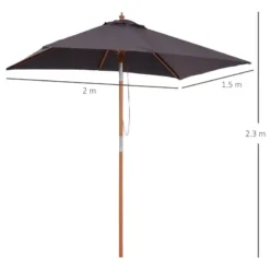 Outsunny 2m x 1.5m Tilt Mechanism Bamboo Wooden Parasol – Deep Grey – 84D-017CG