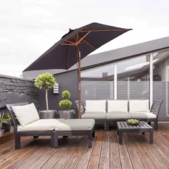 Outsunny 2m x 1.5m Tilt Mechanism Bamboo Wooden Parasol – Deep Grey – 84D-017CG