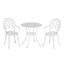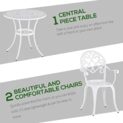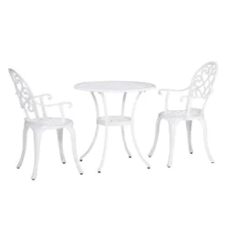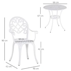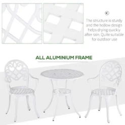 This 3-piece outdoor garden table set from Outsunny is a hollow-carved design and stylish, also help quick drying after rain. This garden table set has simple and modern appearance, Ideal for backyards, balconies, roadsides, and breakfast corners.
