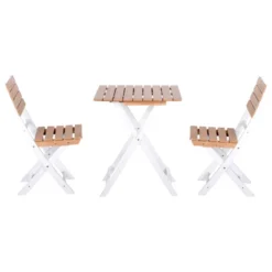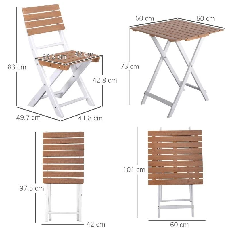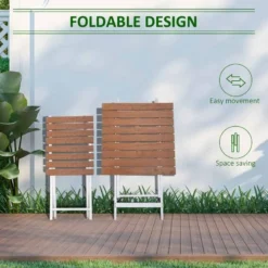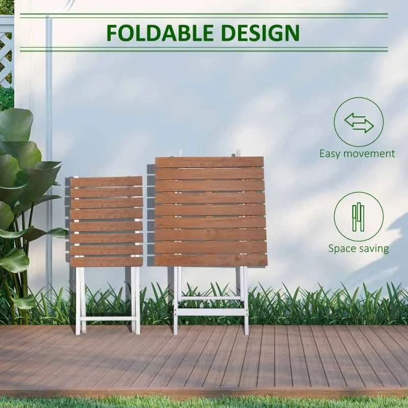 The Outsunny three-piece bistro set is ideal for outdoor use. Natural wooden tops are sturdy and supported by metal frames. The outdoor table and classic style make an excellent backdrop for your time spent with guests. The slatted design allows for airflow and quick drying. Foldable to carry and store easily.