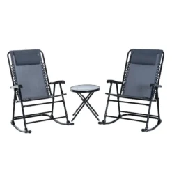 Outsunny 3 Piece Outdoor Rocking Bistro Set – Grey – 84B-202GY