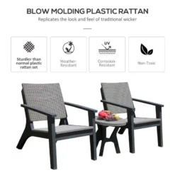 Outsunny 3 PCs Rattan Bistro Set Furniture Armchair Table for Patio Porch – Grey – 863-074V01