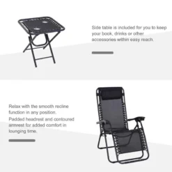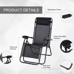 Check out this stunning Outsunny garden sun lounger that we can be sure will compliment your outdoor living space perfectly. Constructed from a powder coated metal frame and plastic arm rests, this sun lounger is strong, durable and will last for years to come. Covered in washable PCV sling fabric that allows air to circulate and keeps you cool on warm summer days, it is also easily cleaned with a damp cloth. Sit up to read a book or recline the back and footrest to convert into a flat lounger for sunbathing in the comfort of your own garden, the added head rest pillow will keep you supported and comfortable. The folding design allows you to manoeuvre to your preferred position and can be packed away when not in use. If you are looking for a beautifully designed sun lounger, this is the one for you.