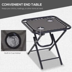 Check out these stunning Outsunny garden sun loungers that we can be sure will compliment your outdoor living space perfectly. Constructed from a powder coated metal frame and plastic arm rests, the set is strong, durable and will last for years to come. Covered in a texeline sling fabric that circulates air to keep you cool on warm summer days and can be cleaned with a damp cloth. The reclining back and footrest function and added pillow allows you to lay back in the comfort of your own garden and keeps you supported for hours on end. Complete with a handy side table with drink holders which is light weight and can be manoeuvred around to your preferred position. The folding design on both chairs and table that allows you to easily pack away when not in use. If you are looking for a beautifully designed sun lounger set, this is the one for you.