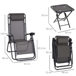 Outsunny 3-Piece Reclining Sun Lounger Set With Table – Grey – 84B-271GY