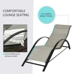 Check out these stunning Outsunny garden sun loungers with side table that we can be sure will compliment your outdoor living space perfectly. Constructed from a powder coated metal frame the set is strong, durable and will last for years to come. Covered in a mesh sling fabric that circulates air keeping you cool on warm summer days and are easily cleaned with a damp cloth. The curved seats contours your body perfectly and will make you feel fully supported and comfortable for hours on end. Complete with a handy side table ideal for resting your drinks or snack bowls on, that is also lightweight, so is easily manoeuvred to your preferred position, even with the elegant glass top finish. If you are looking for a beautifully designed sun lounger set, this is the one for you.