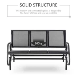 Outsunny 3-Seat Glider Rocking Chair for 3 People Garden Bench Patio Furniture Texteline – 84B-531