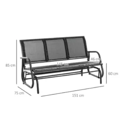 Unwind and relax with this Outsunny rocking garden bench. With a rocking function, this bench will glide you back and forth smoothly for ultimate relaxation. Constructed from a durable powder coated steel frame this bench is sturdy and will last for years to come. Covered in a breathable textile fabric, high back and curved arm rests this bench offers you body support and comfort. The large 3 seater is perfect for you and a few friends to relax together in a peaceful spot of your outdoor living space.