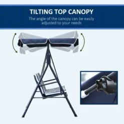 Outsunny 3-Seater Canopy Steel Swing Chair – Blue – 84A-054V01BU