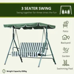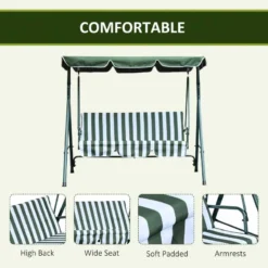Outsunny 3-Seater Garden Swing Chair – Green – 84A-054V01