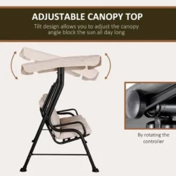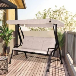 Outsunny 3-Seater Garden Swing Chair with Cushions – Beige – 84A-140V70BG