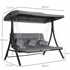 Outsunny 3-Seater Recliner Garden Swing Chair – Grey – 84A-139V70