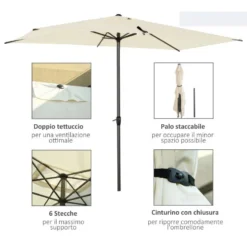 Outsunny 3 x 2m Patio Parasol with Tilt Crank – Beige – 84D-126BG