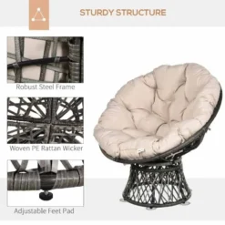 Outsunny 360° Swivel Rattan Chair – Beige and Grey – 867-021V70