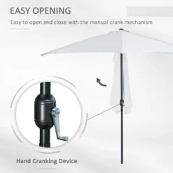 Outsunny 3m Balcony Half Parasol – White – 84D-008CW