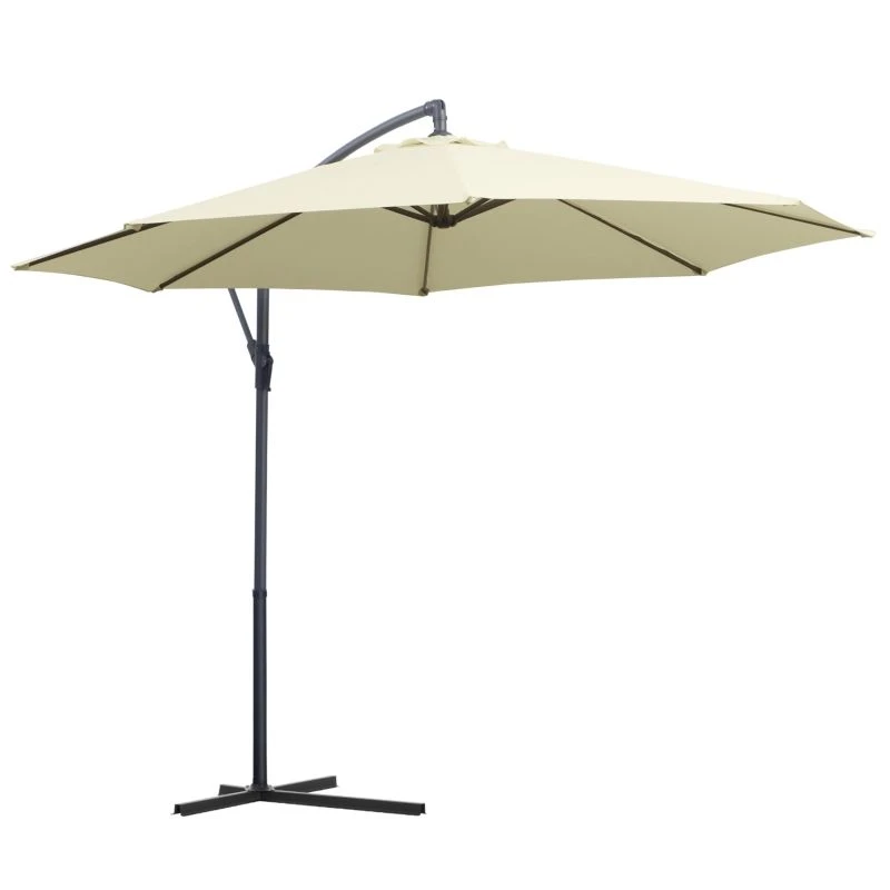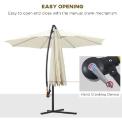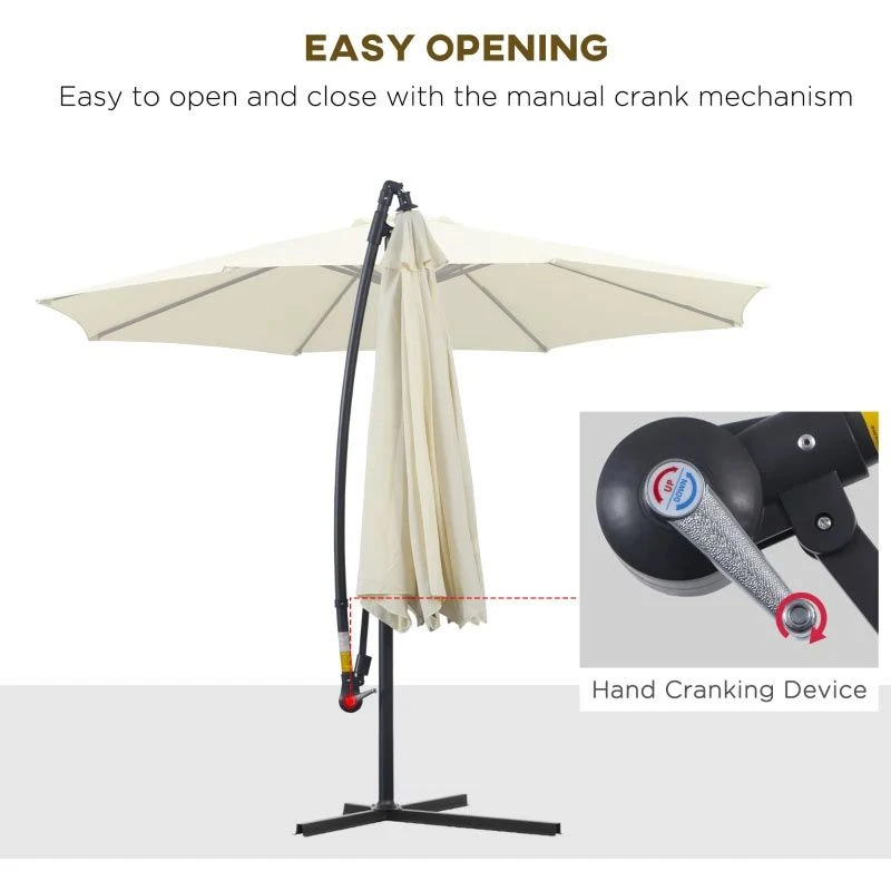 Outsunny 3m Banana Hanging Rattan Set Umbrella Cantilever Parasol – Cream White – 01-0218