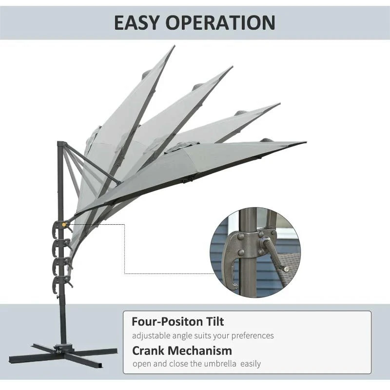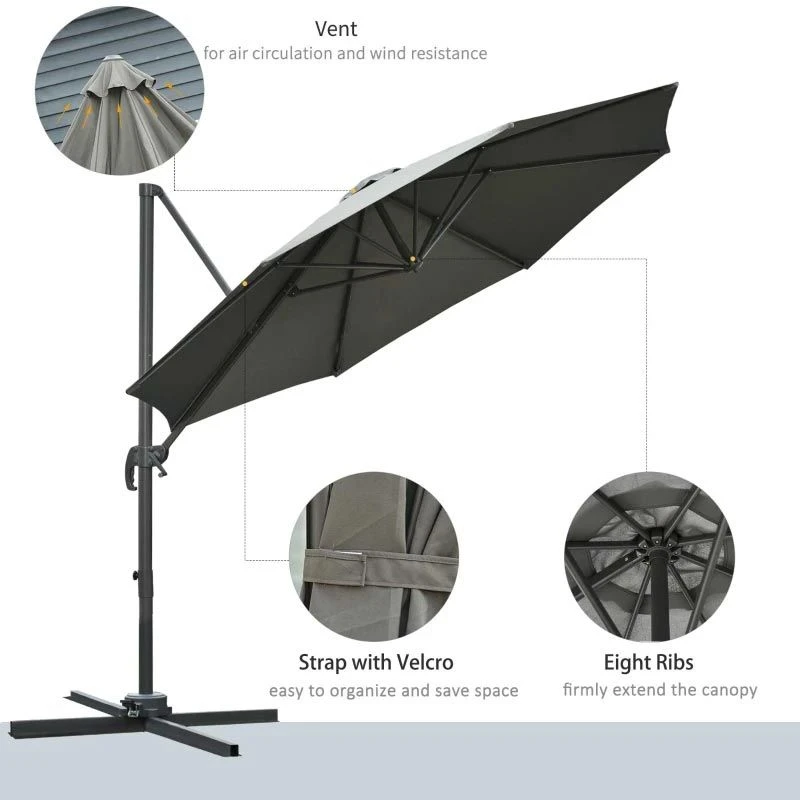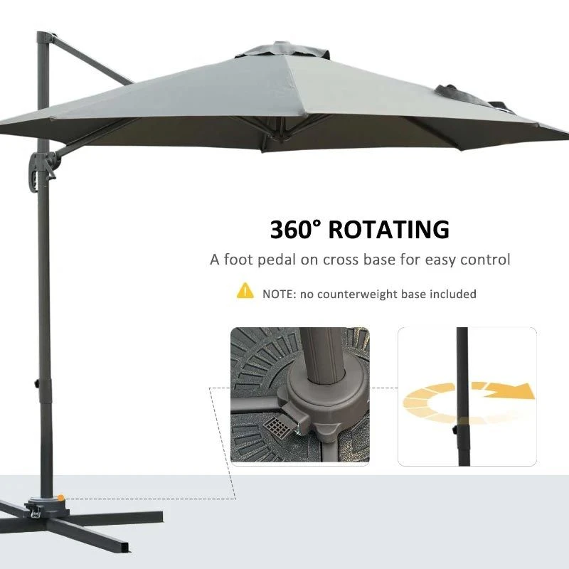 Outsunny 3m Cantilever Hanging Offset Parasol 360° Rotation with Base – Dark Grey – 84D-065CG