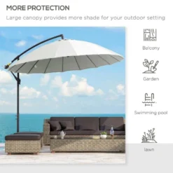 Outsunny 3m Cantilever Umbrella 18 Ribs & Vents Adjustable Angle – Cream White – 84D-118CW