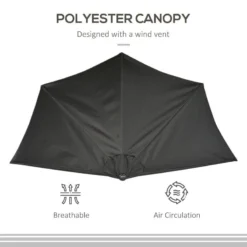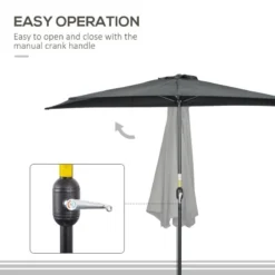 Outsunny 3m Half Semi Round Parasol Crank Handle – Black – 84D-008V00BK